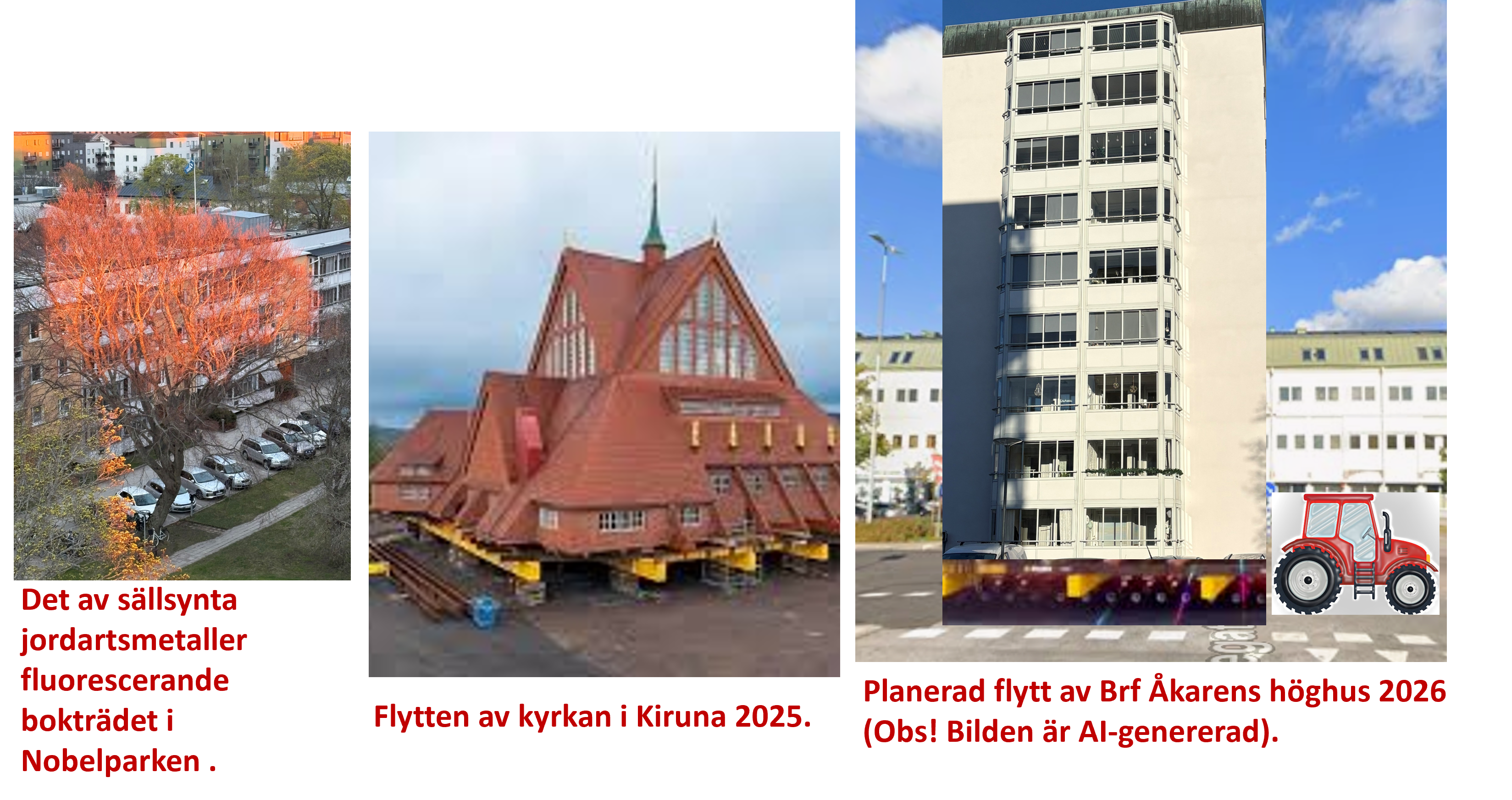 Vi har väl alla då och då noterat att Nobelparkens enda bok ibland utsänder ett fluorescerande sken. Fenomenet beror på att det i berggrunder under förekommer sällsynta jordartsmetaller. Fyndigheterna, som också har påvisats med hjälp av fotografering från satellit, är så pass rikliga att det föreligger grund för kommersiell brytning och utvinning av metallerna. Mark och miljödomstolen har därför i dagarna beviljat det kinesiska gruvbolaget  简 体 字 (Cing Hoan Li) att inleda gruvbrytning i parken med start den 1 juli.